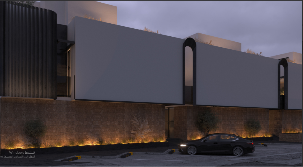 تعتبر الأفنية أحد أهم العناصر المعمارية الي تؤثر بشكل فعال على تخفيف الحمل الحراري للمبنى وهي أحد الركائز المهمة للمشروع.